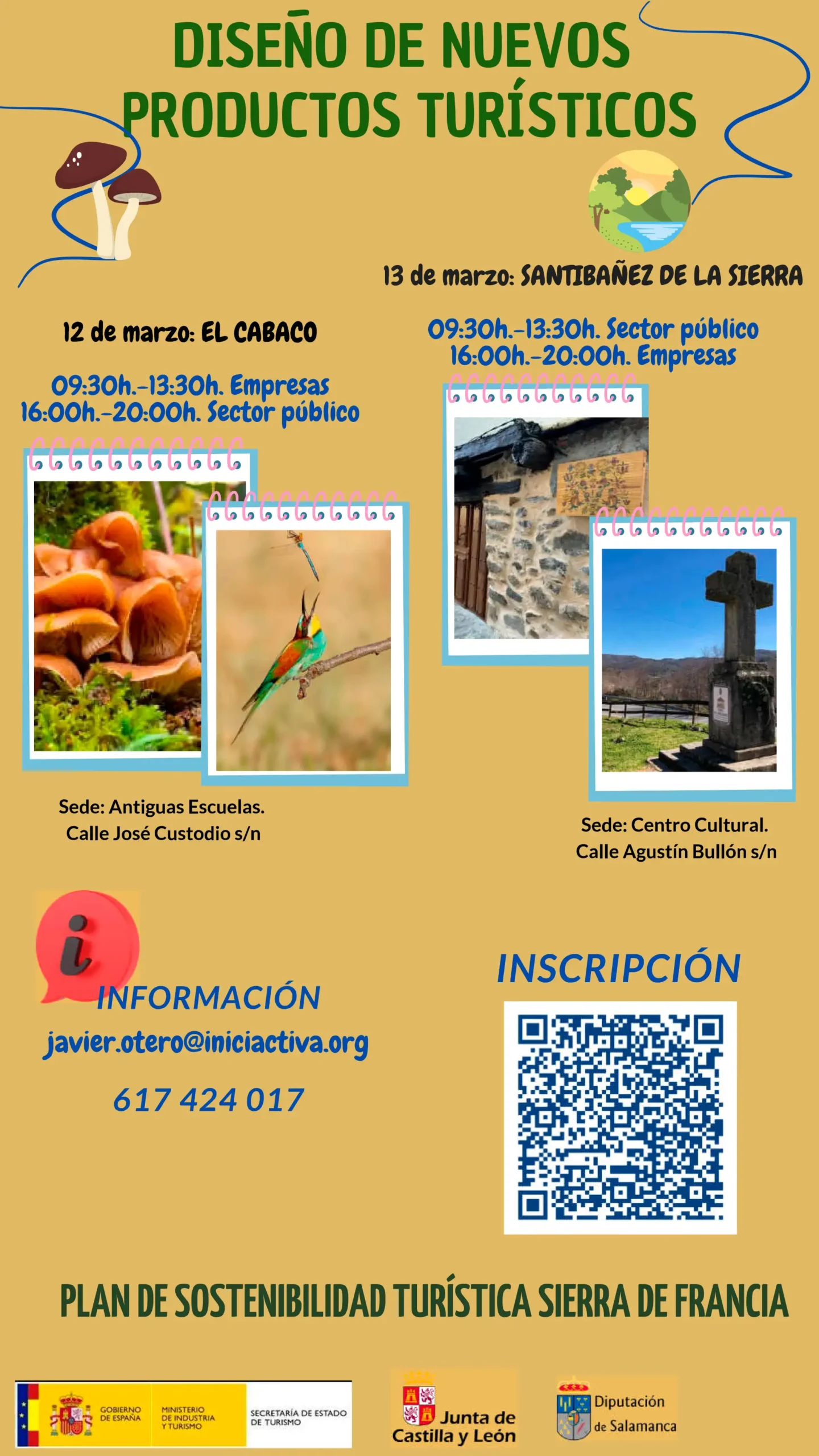 Estos talleres explorarán las oportunidades que ofrece la Sierra Francia y brindará herramientas prácticas para identificar y desarrollar nuevos productos turísticos. Desde la conceptualización hasta la implementación, los participantes adquirirán conocimientos esenciales para destacar en la creación de experiencias turísticas auténticas y atractivas. Dirigido tanto a empresas turísticas como a empleados del sector público, estos talleres se centrarán en la importancia de la colaboración estratégica para el éxito de los nuevos productos turísticos. Se abordarán temas como la coordinación entre sectores, el desarrollo sostenible y la promoción efectiva del destino.