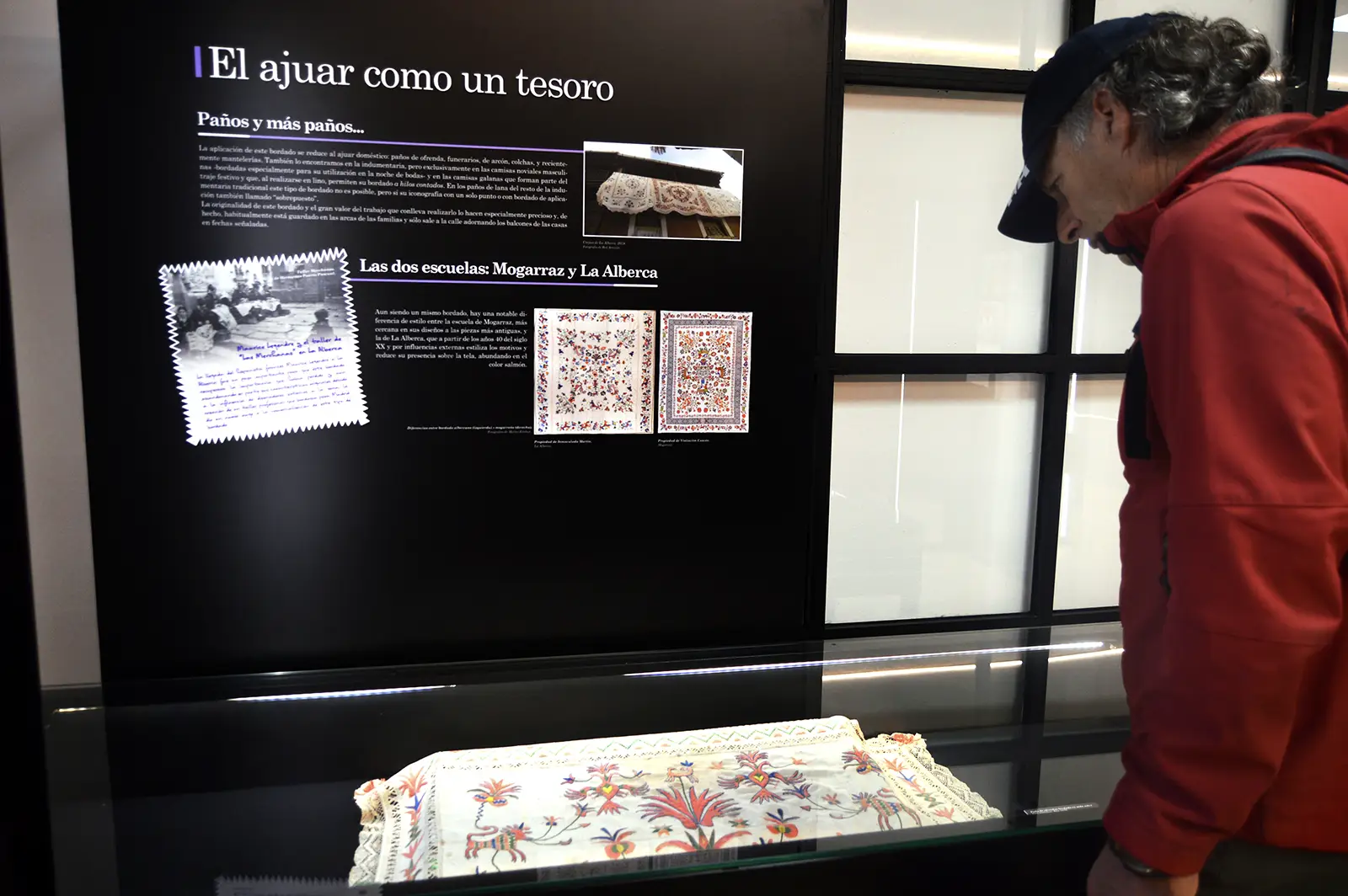 Una serie de paneles interpretativos recogen la información textual y gráfica, de gran calidad y rigor, que es completada con vitrinas con paños bordados y distintos elementos etnográficos que se emplean en el proceso de elaboración del bordado.