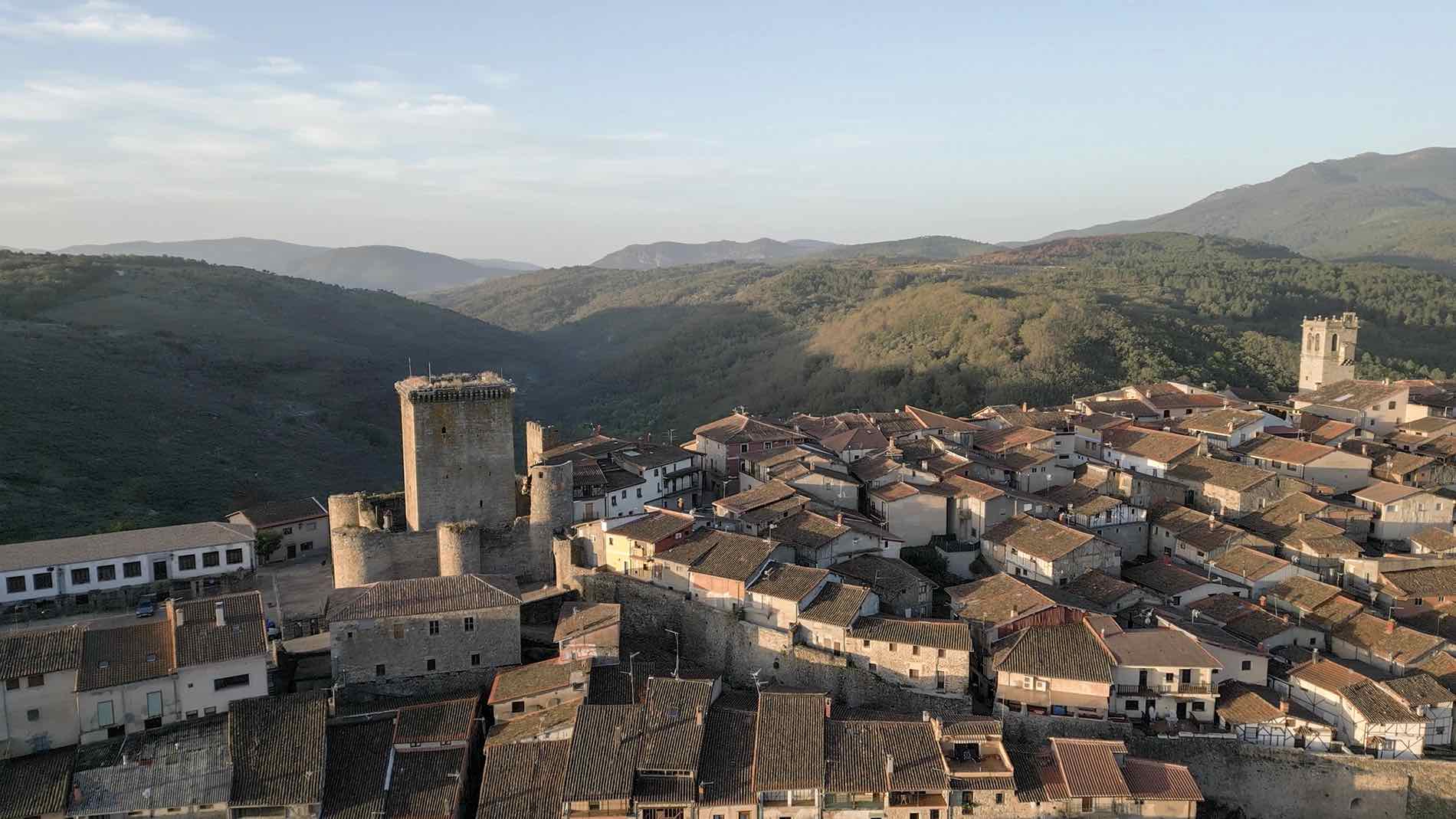 Al adentrarse en esta joya arquitectónica a través de su puerta natural, uno se ve inmerso en una amplia plaza que antaño fue un patio de armas del siglo XVI y que, en aquel entonces, se utilizaba como plaza de toros. Desde este punto privilegiado, la vista se deleita con la majestuosidad del castillo, mandado construir en el siglo XV por Don Pedro de Zúñiga, señor de Miranda del Castañar. Con su planta en forma de trapecio y custodiado por altos muros, este magnífico edificio alberga cuatro torres cilíndricas en sus esquinas, mientras que una torre del homenaje elevada, coronada por un elegante matacán, se yergue en lo más alto, recordando tiempos de grandeza y honor.