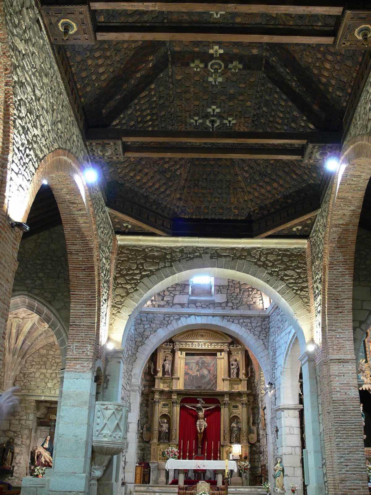 La iglesia dedicada a S. Martín de Tours, lo que refleja una vez más la influencia francesa en la zona, fue declarada Bien de Interés Cultural en 1981. Comenzaría su construcción en el siglo XIII, época de la que se conserva el cuerpo de naves, individualizadas mediante grandes arcos de ladrillo de estilo gótico-mudéjar y la puerta septentrional. En los siglos siguientes se hicieron sucesivas reformas (la puerta meridional gótica, la bóveda de crucería, la torre, la capilla mayor y el cimborrio…) hasta el estado actual. En el retablo, de estilo barroco, destaca la figura del Cristo del Miserere y de San Martín de Tours. En el exterior, cuenta con un pórtico de columnas de estilo jónico del siglo XVI y una estela romana en el atrio. Destacan también la ermita del humilladero, el puente medieval y la plaza mayor con una gran fuente y un soportal de gran tamaño donde se celebraba el concejo abierto.