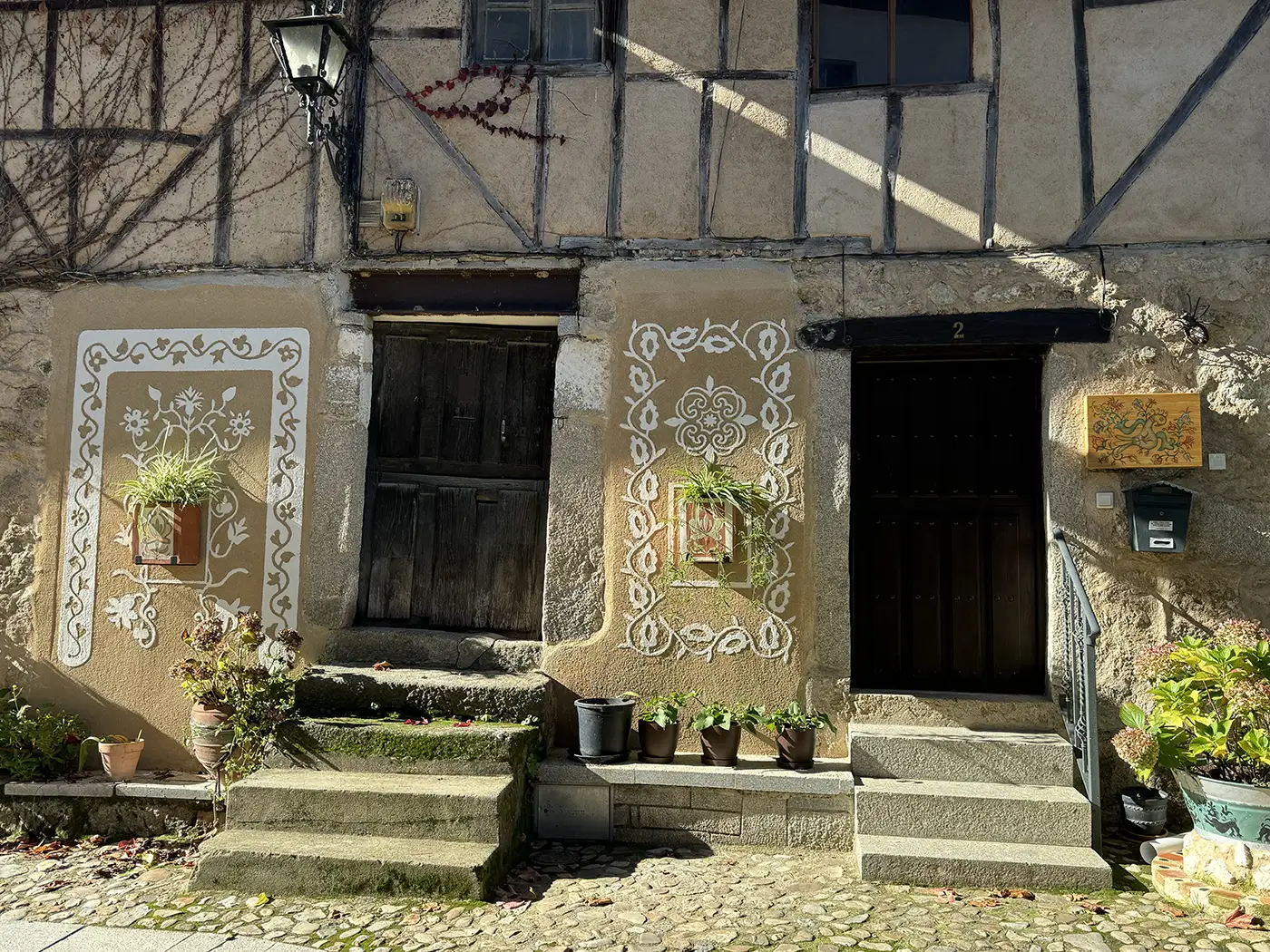 El esgrafiado que, mediante la impronta de artífices anónimos, embelleció en tiempos pasados el patrimonio arquitectónico del mundo rural aún se puede contemplar en algunos pueblos de la Sierra de Francia como Las Casas del Conde, Cepeda, Herguijuela de la Sierra, Miranda del Castañar, Mogarraz, Monforte, San Esteban de la Sierra o Sequeros entre otros.