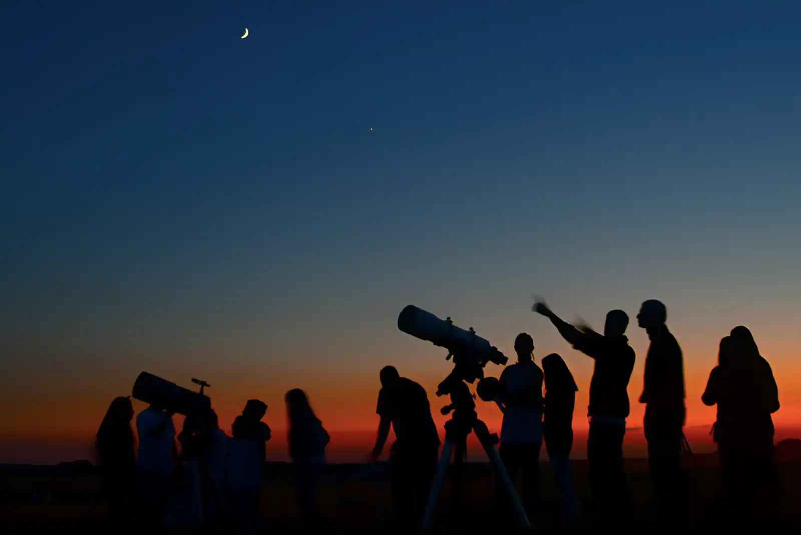 - El desplazamiento hasta el punto de observación correrá a cargo del cliente. Se recomienda uso de calzado cómodo y ropa de abrigo, incluso en verano ,ya que por la noche suele refrescar y al estar parados la sensación de frío es mayor. Ya que es una actividad que se realiza en el campo, no se dispone de aseos. Los objetos a observar por telescopio varían de una noche a otra dependiendo de la época del año, el horario de observación y la presencia o no de la Luna.