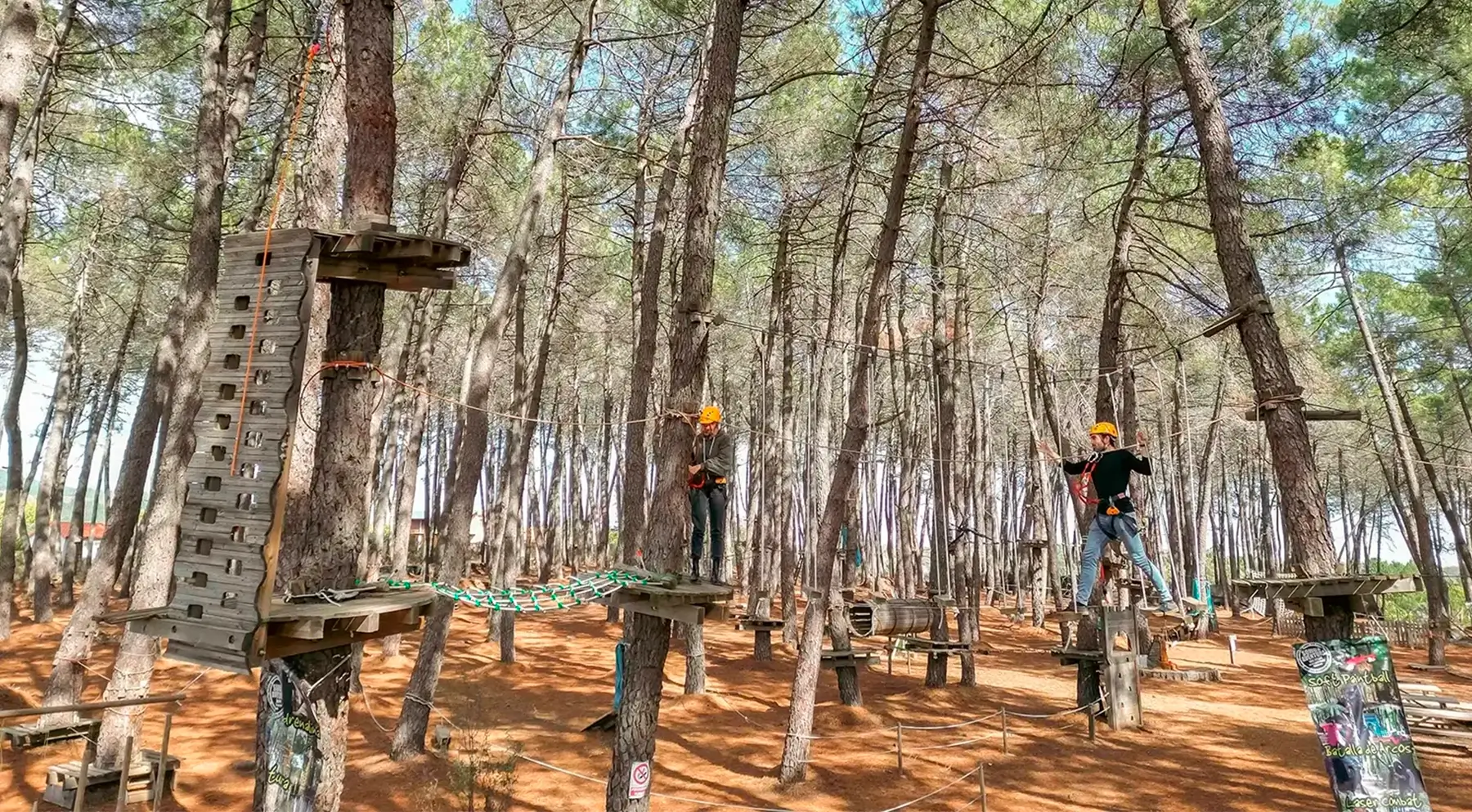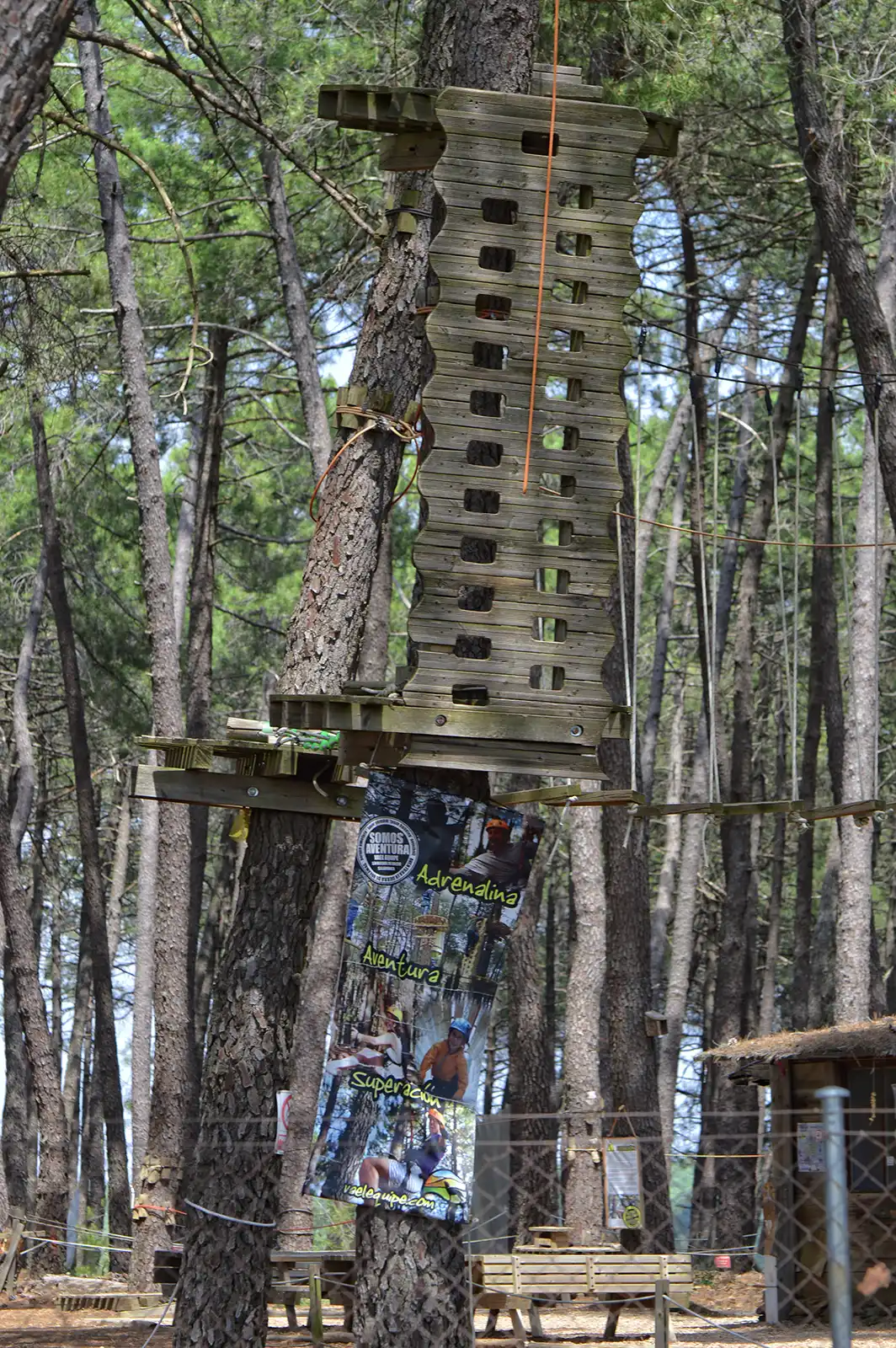 Este Parque de aventura en los árboles es una nueva, divertida y original manera de visitar un bosque. Un conjunto de recorridos deportivos y lúdicos discurren, en íntimo contacto con el medio natural, entre un grupo de árboles con plataformas de madera, puentes y pasarelas suspendidas a diferentes alturas del suelo, dando una nueva perspectiva del paraje arbóreo.